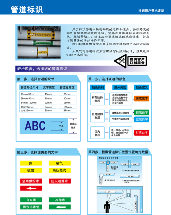 我们能够提供经验丰富而且系统的管道标识产品和订制服务。